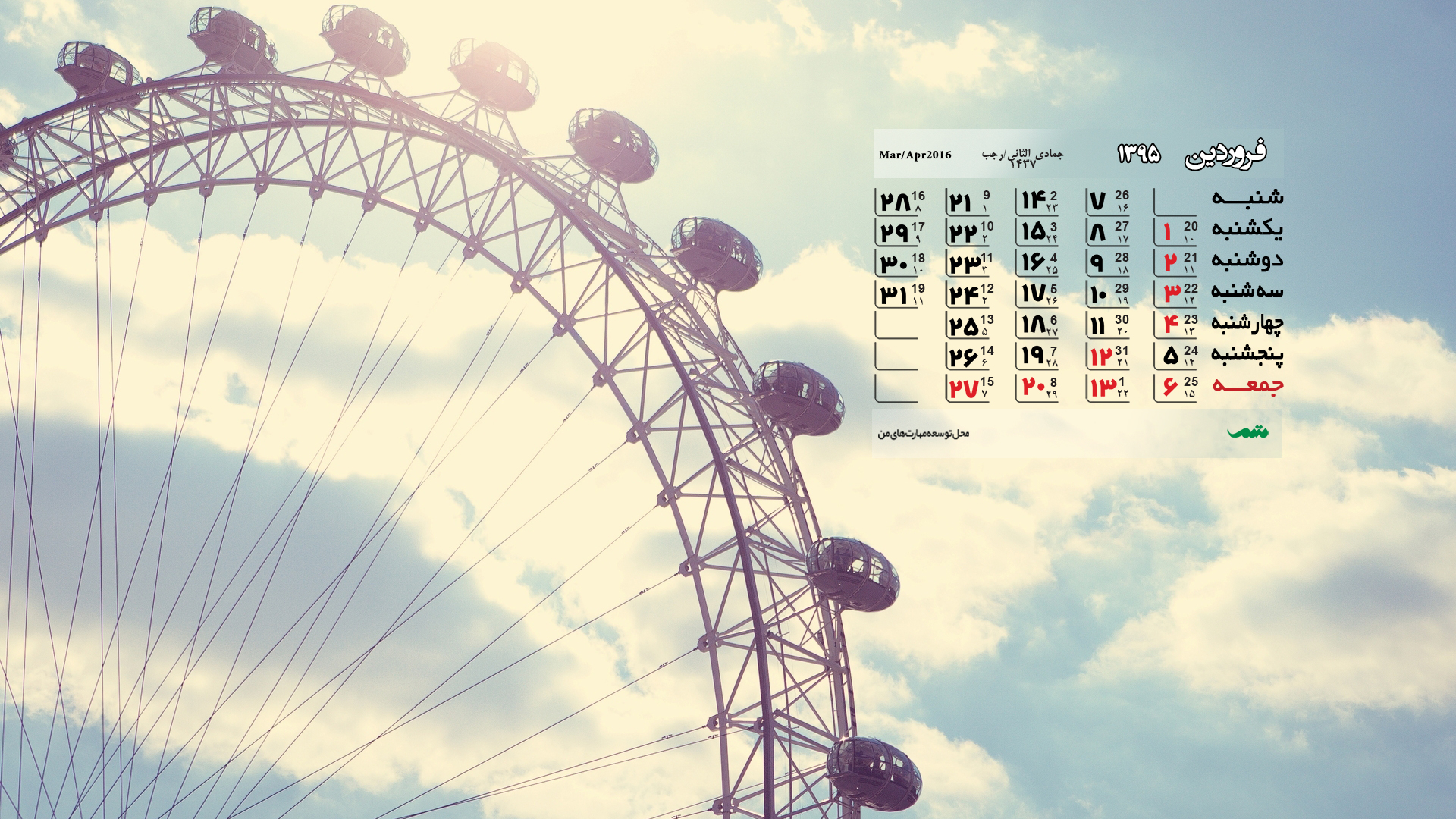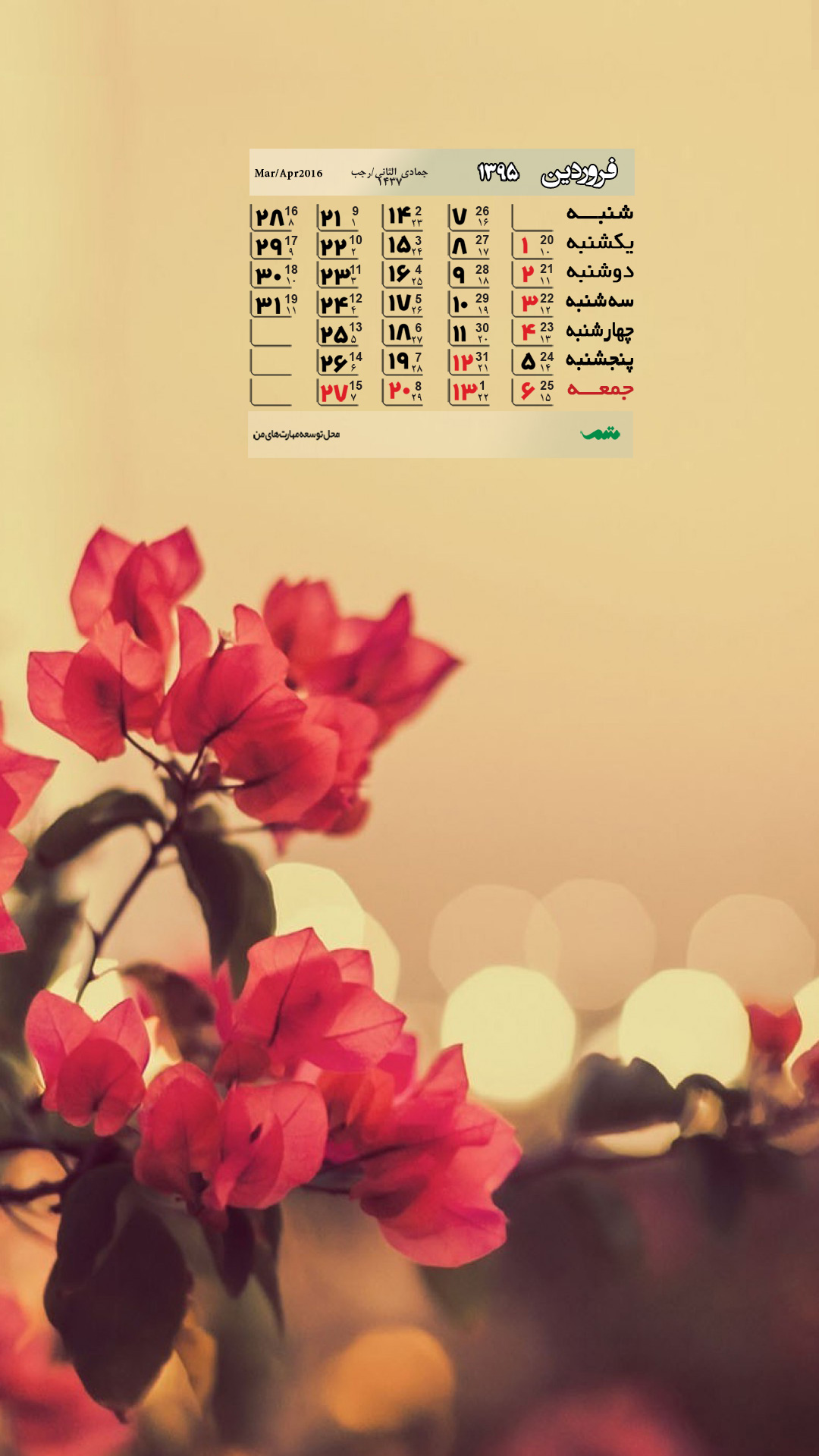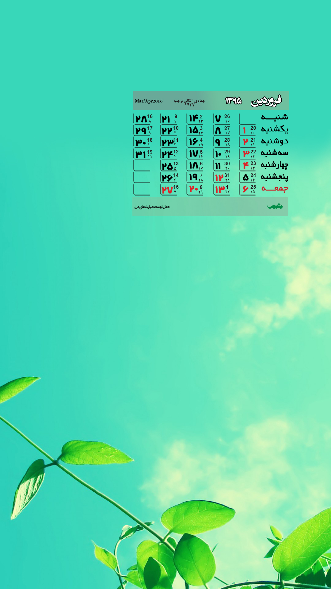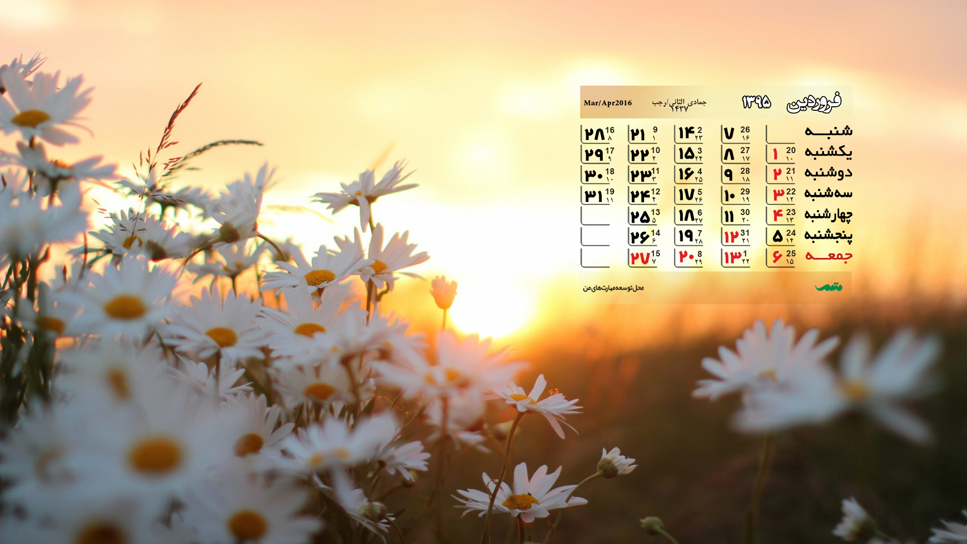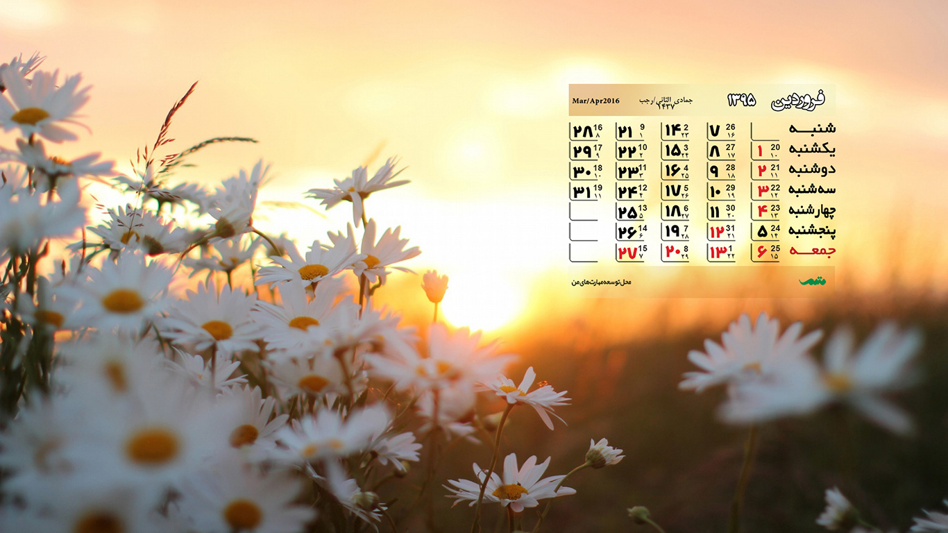 تقویم فروردین ماه ۹۵ (مجموعه والپیپر – تصاویر پس زمینه برای دانلود)